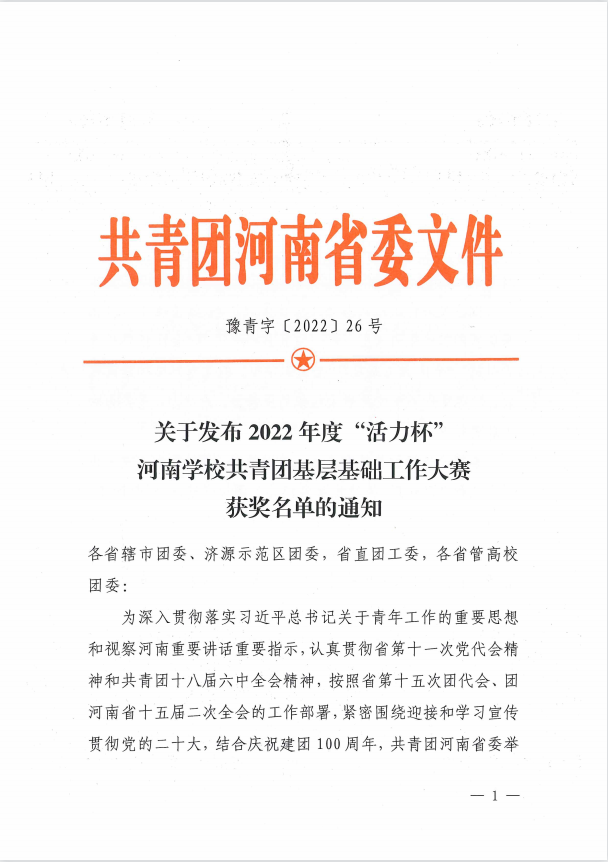 “活力杯”河南学校共青团基层基础工作大赛由共青团河南省委主办,旨在通过比赛发掘一大批学校共青团基层基础工作优秀做法,收集一大批基层基础工作先进典型。自本届“活力杯”启动以来,新葡萄官网高度重视,各团支部广泛参与,展示了一系列内容充实、切近学生、各具特色的校园文化活动,充分展示了各团支部的生机和活力。